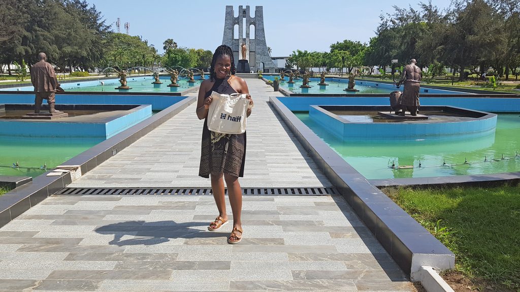 Emily Anderson snapped a photo with her Halff bag in front of the Kwame Nkrumah Memorial Park in Accra, the capital of Ghana.